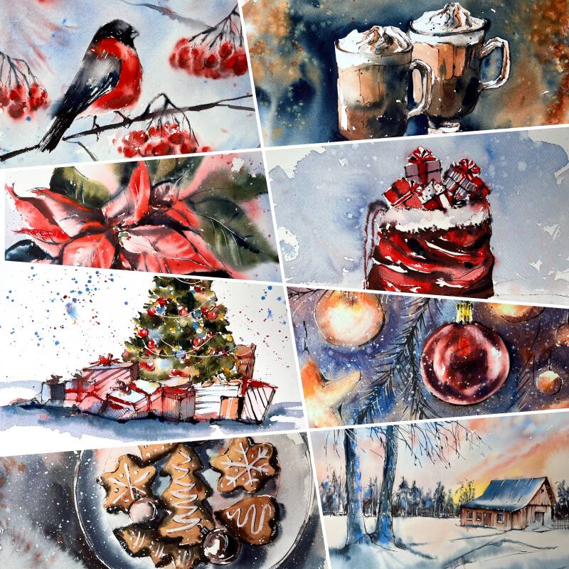 Cours en ligne Croquis de Noël à l’aquarelle 1