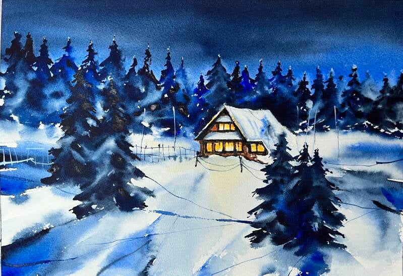 Ce cours est une invitation à peindre l'hiver. Chaque sujet d'aquarelle proposé raconte une histoire différente. Montagnes ou forêts, nuit bleue ou journée ensoleillée - venez explorer les différents moments d'une journée d'hiver à travers des gammes de couleurs variées et des conseils sur la pratique de l'aquarelle.